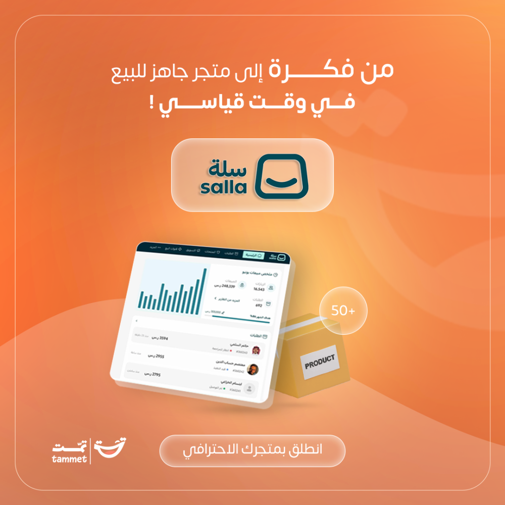 نقوم بإنشاء متجر إلكتروني احترافي على منصة سلة، شامل الإعداد الكامل وتخصيص الهوية البصرية، مع رفع وإضافة 50 منتج جاهزين بالصور والمعلومات، لبدء بيعك من اليوم الأول بسهولة وبأعلى جودة.